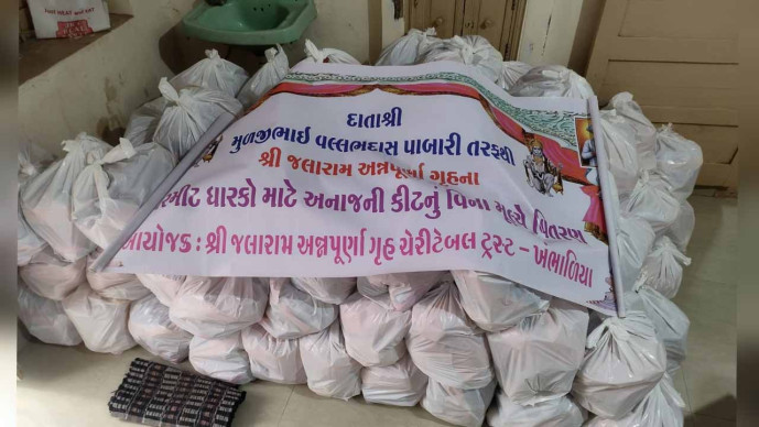 ખંભાળીયામાં જલારામ અન્નપૂર્ણા ગૃહ ચેરી. ટ્રસ્ટ દ્વારા જીવન જરૂરીયાતની કીટનું વિતરણ કરાયું