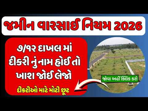 જમીન વારસાઈ નિયમ 2026 | ૭/૧૨ દાખલ માં દીકરી નું નામ હોઈ તો ખાશ જોઈ લેજો | દીકરીઓ માટે મોટી છૂટ