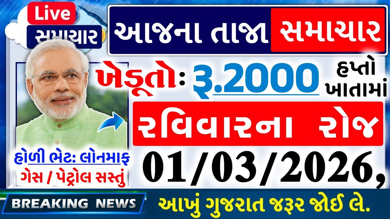 નમસ્કાર મિત્રો! આજે તારીખ 1 માર્ચ 2026 છે અને ગુજરાતમાં ઘણા નવા નિયમો અને ફેરફારો લાગુ થઈ રહ્યા છે. હોળી પણ નજીક છે (હોળિકા દહન 3 માર્ચ અને ધુળેટી/હોળી 4 …
